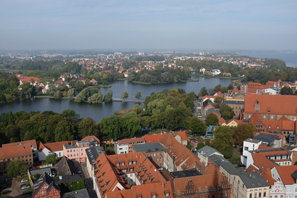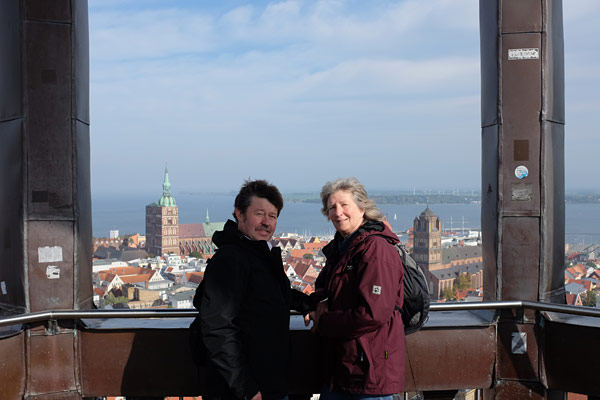 Da das Wetter gut war, stiefelten wir 360 Stufen hoch, um die Sicht von dem Kirchturm auf Stralsund und Rügen zu genießen.