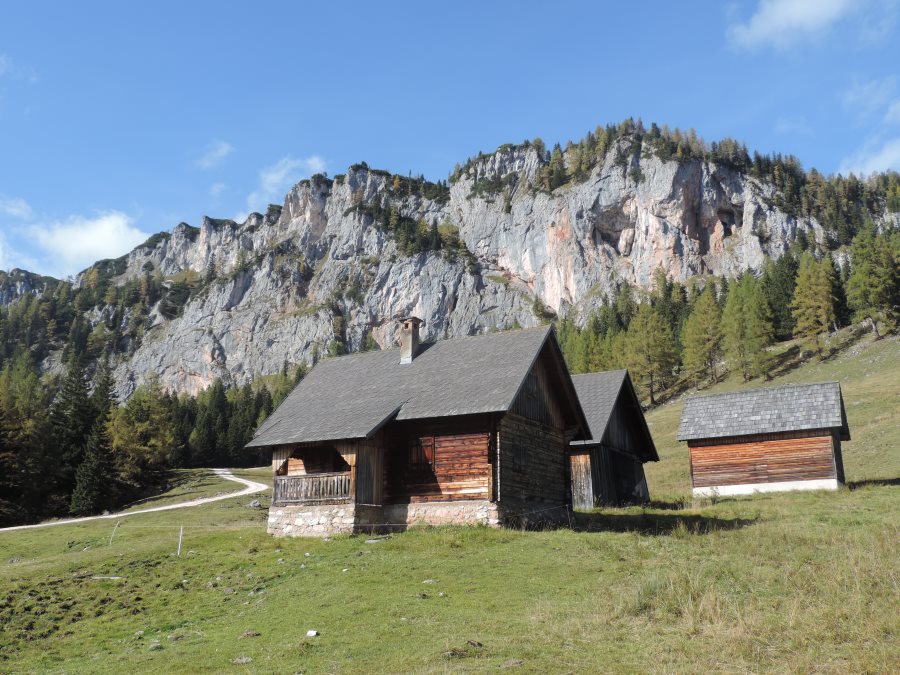 Einige schöne Almhütten lagen vor uns aber alle geschlossen. Und immer wieder Infostände.