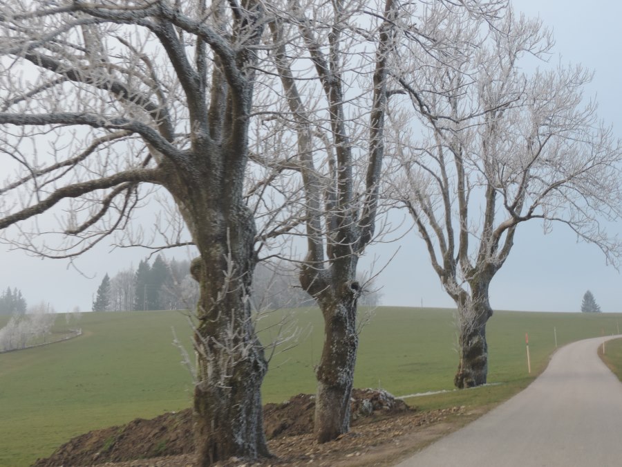 Wir haben heute einen wunderschönen Ausflug gemacht, weil Sigi bei der Heimfahrt von der Arbeit gesehen hat, dass ab der Nebelgrenze auf den Bäumen Raureif war.
