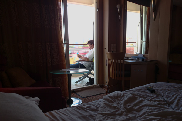 Wir hatten übrigens schon online eingecheckt, aber ich habe mir diesen Wust an Papieren nicht ausgedruckt. Es spielte auch keine Rolle, denn sie haben ja alles im Computer.. Als wir jedoch die Koffer abgegeben haben, wurden wir nach unserer State-room-number gefragt. Die wussten wir natürlich nicht, nur dass wir im 3. Stock untergebracht waren. Die Mitarbeiter von Celebrity hatten aber Passagierlisten und so sagte man uns, dass wir Zimmernummer 60XX haben. Prima, alles klar.