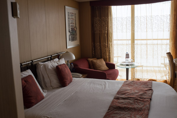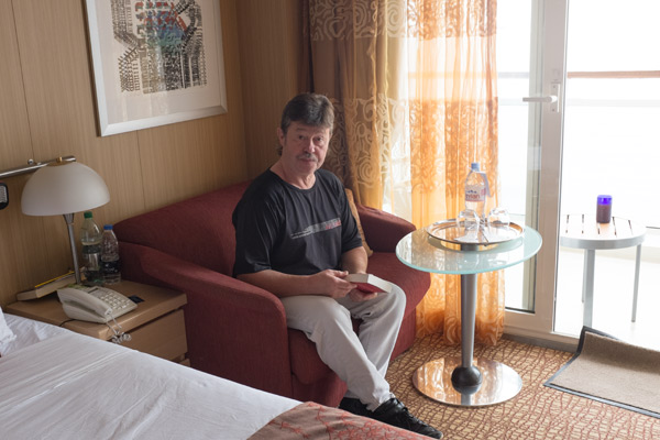 Diese ganze Eincheckerei hatte ungefähr 2 Stunden gedauert. Wir wurden zweimal fotografiert, für den Seapass und die Immigration, auch ein Abdruck des Daumens wurde genommen. Irgendwann haben wir alles überstanden. Nun wollten wir aber auch rauf auf´s Schiff. Mit einem Shuttle wurden wir dorthin gebracht. Dann waren wir da. Die Celebrity Infinity ist ein ganz schön großes Schiff, wenn man so davor steht. Wir gingen hinein und wurden mit einem Glas Sekt begrüßt. Langsam dämmerte es mir auch, dass unser Zimmer nicht wie gebucht im 3. Stock lag, sondern im 6. Mhmm, da scheinen wir ein Upgrade bekommen zu haben.