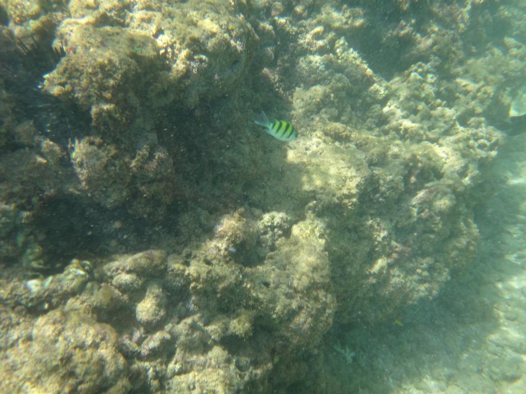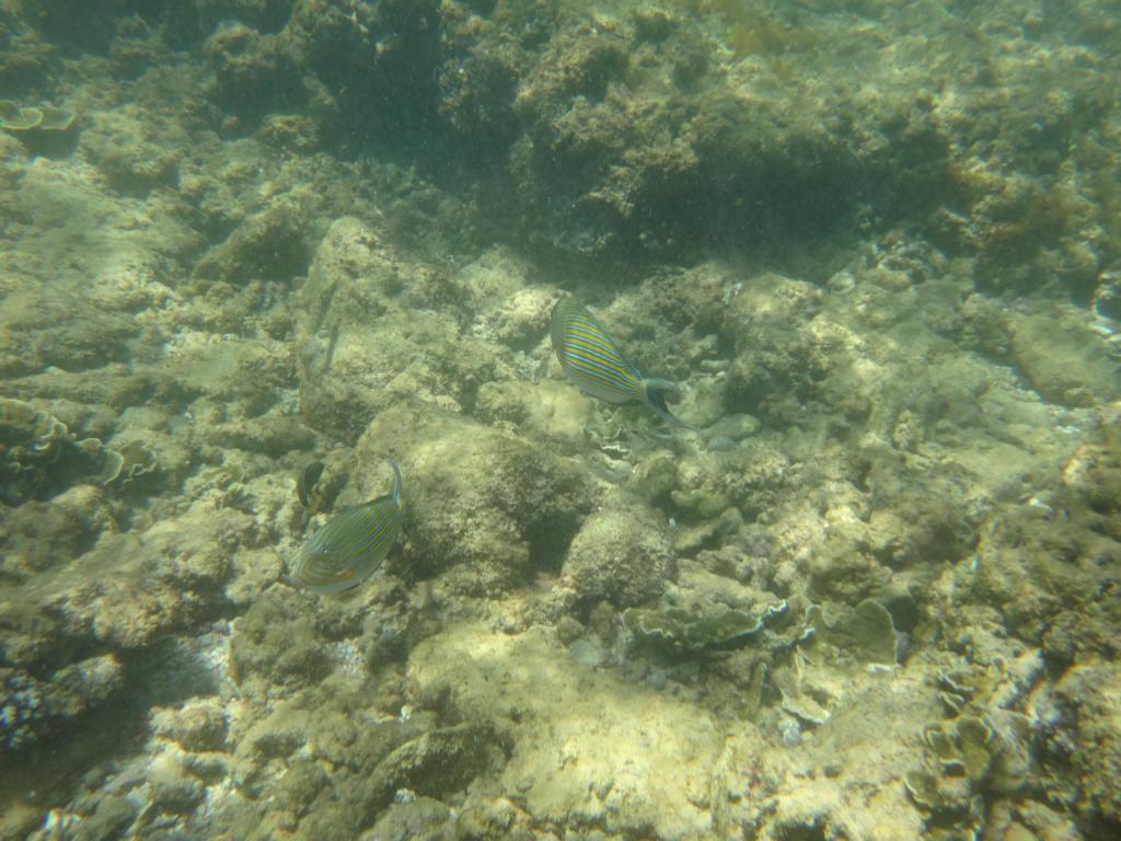 Auch wenn das Meer heute deutlich ruhiger ist, ist es doch unruhig. Das Fotografieren gestaltet sich schwierig . Okke ist unser Kameramann und schießt einfach drauf los- Fische gibt es hier schon, allerdings kein Vergleich mit den Seychellen.
