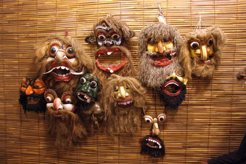 Viele Masken werden im Rahmen traditioneller Tänze verwandt. Einige sind wirklich riesig, obwohl ansonsten das Holz, aus dem sie geschnitzt sind, sehr sehr leicht ist. Aber die Masken vom König und seiner Königin wiegen schon mal 6 kg