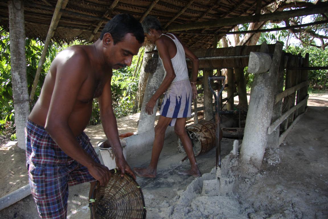 Es geht weiter zur letzten Station, einer MOndsteinmine. Mondsteine werden nur in dieser Gegend von Sri Lanka geborgen. In der Mine sind drei Mann unten den ganzen Tag, zwei stehen oben an einer WInde, und ziehen die Eimer mit den Gesteinsbrocken hoch