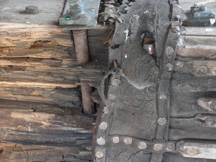 Sieht irgendwie nach einer Schuhsohle aus, aber die wäre doch nicht festgenagelt?ich erkenne nichts, ausser " blühende Phantasien "