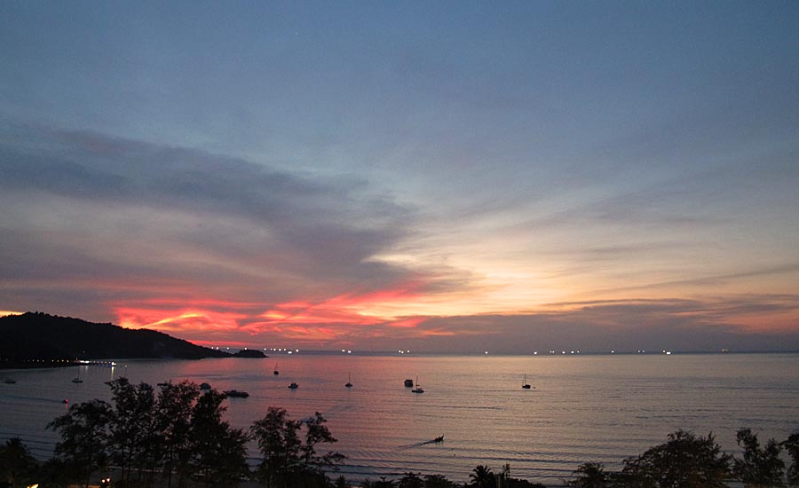 Über Dubai und Bangkok sind wir stressfrei nach Phuket geflogen. Wir wohnten diesmal nicht im Hotel, sondern in einem Apartment im 13. Stock des Patong Tower, also mitten drin und doch ruhig und weg vom üblichen Trubel. Die Wohnung war top, modern, sauber, funktionell und der Ausblick grandios. Wir waren mehr als angenehm überrascht.