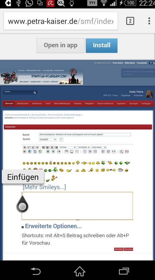 Smartphone: Wie kann ich einen Link kopieren und ins Forum setzen?