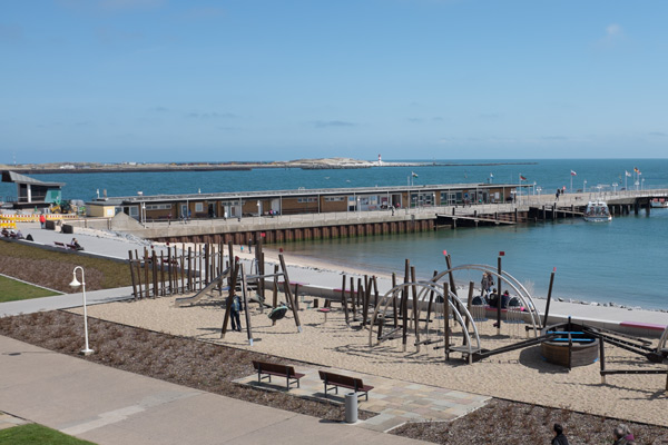 Die Überfahrt von Cuxhaven habe ich mit dem Katamaran gebucht, es gibt auch ein größeres Bäderschiff, aber das braucht fast die doppelte Zeit. Der Katamaran fährt immerhin um die 60 km/h und schafft die Strecke in gut 75 Minuten.