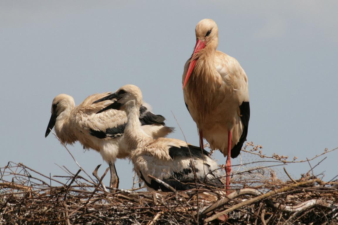 Heute waren wir ja den ganzen Tag unterwegs und haben sehr viele Fotos geschossen, die erst einmal bearbeitet werden müssen. Morgen machen wir wieder wenig, und dann kommt die Bearbeitung. Für heute nur ein paar Bilder - wir sind an Störchen vorbeigekommen, die auf abgeschnittenen Weiden dicht an der Straße brüteten - und so konnten wir diese Fotos machen