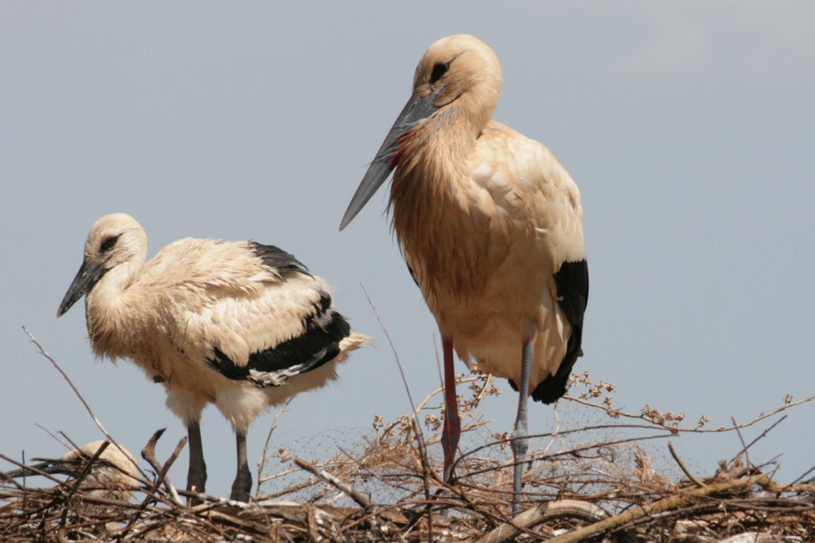 Heute waren wir ja den ganzen Tag unterwegs und haben sehr viele Fotos geschossen, die erst einmal bearbeitet werden müssen. Morgen machen wir wieder wenig, und dann kommt die Bearbeitung. Für heute nur ein paar Bilder - wir sind an Störchen vorbeigekommen, die auf abgeschnittenen Weiden dicht an der Straße brüteten - und so konnten wir diese Fotos machen