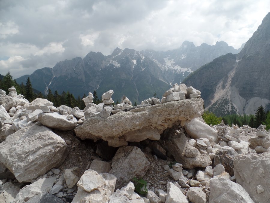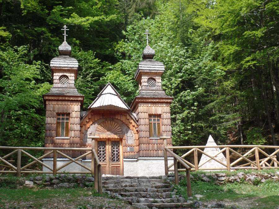 Wir fuhren also zur schon Zuhause entdeckten Russischen Kapelle und über den Vrisic Pass auf ca. 1600 m hoch, wanderten zu einer Hütte, fuhren weiter über den Predil zum gleichnamigen See und über Tarvis in Italien wieder zurück nach Krajn und unseren kleinen Ort. -