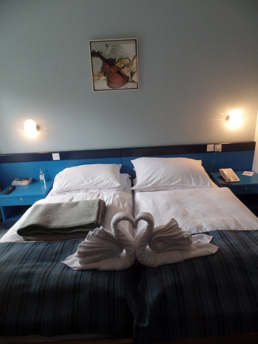 Das kleine 3* Stern Hotel liegt total am kleinen See und wir könnten vom Balkon im 1. Stock aus dem Fenster ins Wasser springen. Es ist kein tolles Luxushotel aber alles da was wir brauchen in herrlicher Lage. Internet ist frei und ich kam sofort rein.