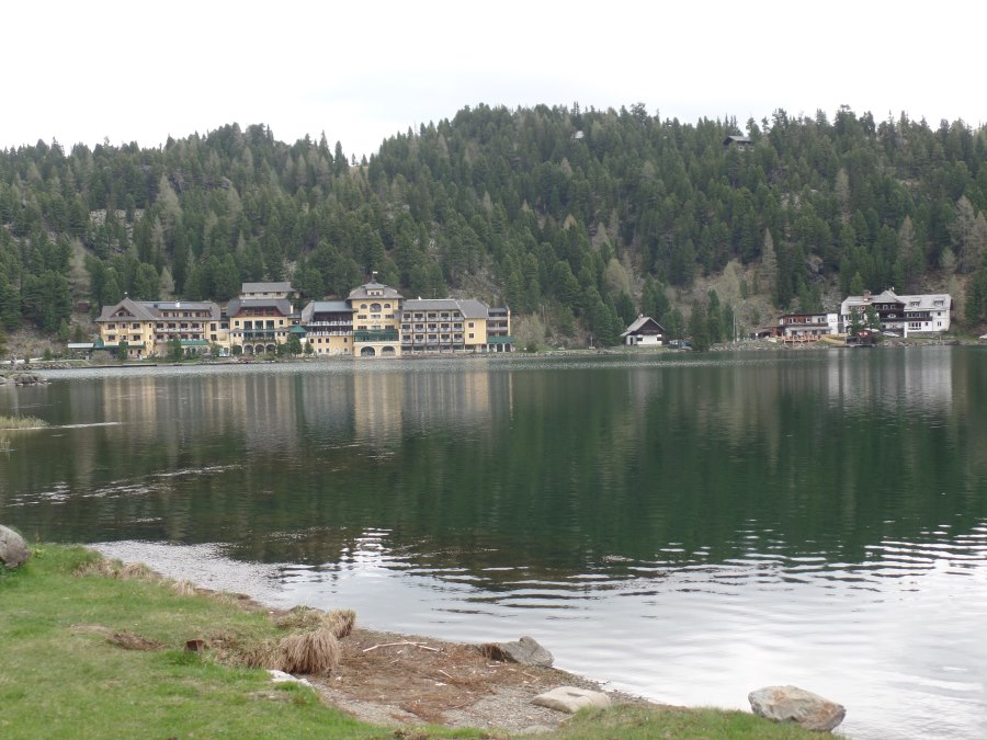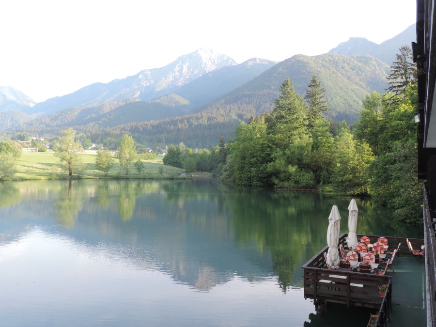 Erst am 1. Juni sperrt das Gasthaus wieder auf und so machen wir nur 1 Foto vom See und Wirt und fahren weiter.