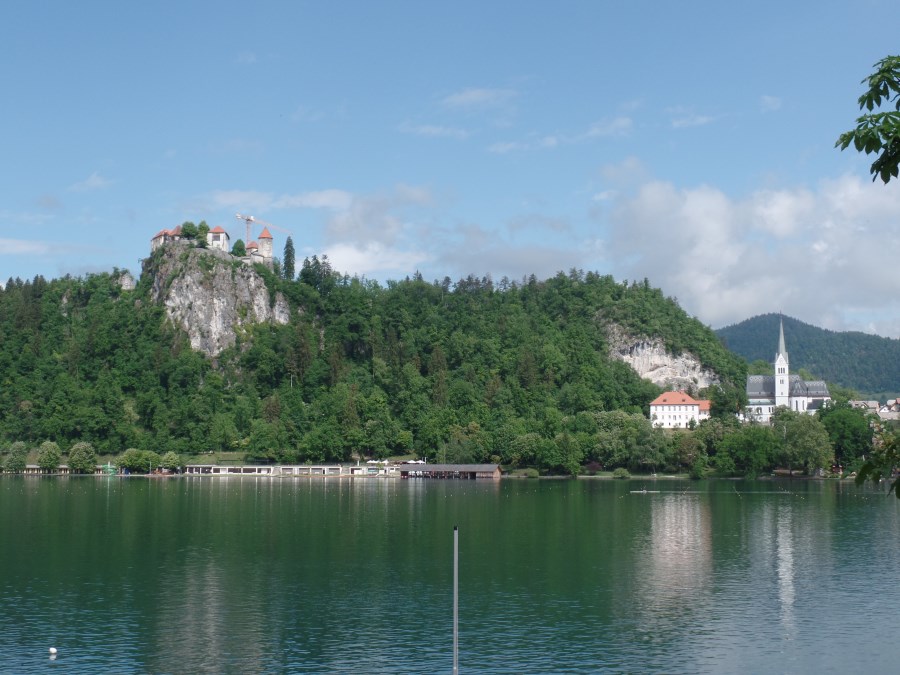 Hier waren wir vor 30 Jahren schon mal gewesen aber unsere Erinnerung hielt sich in Grenzen und so flanierten wir am See entlang mit Ausblick auf die Burg am Felsen oben und die Kirche auf der Insel im See.