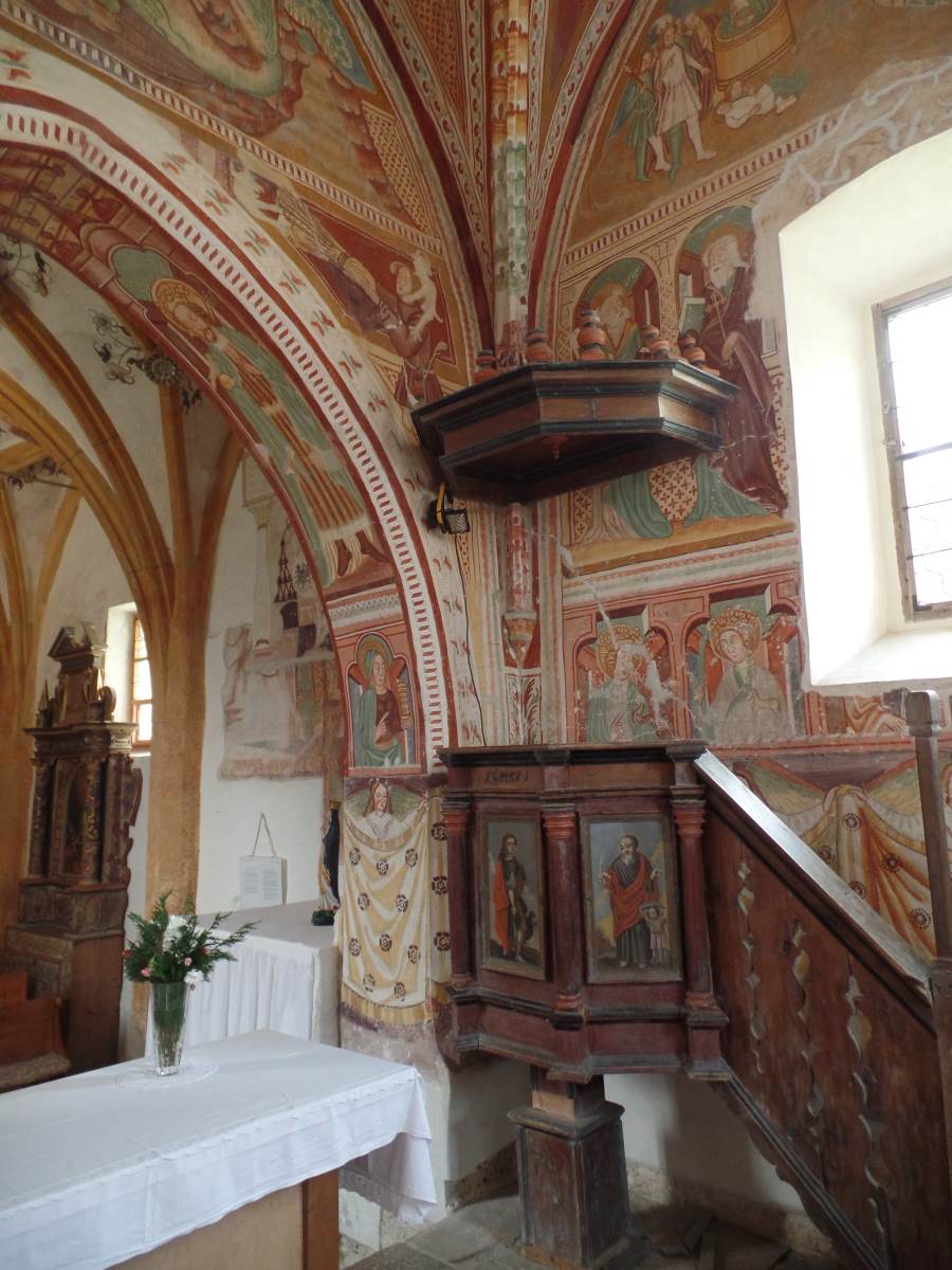 Wir fahren zu der Kirche, steigen aus, machen Fotos und gehen hinein. Oh, das ist die Falsche, hier sind keine Fresken. Egal, hübsch ist sie trotzdem.