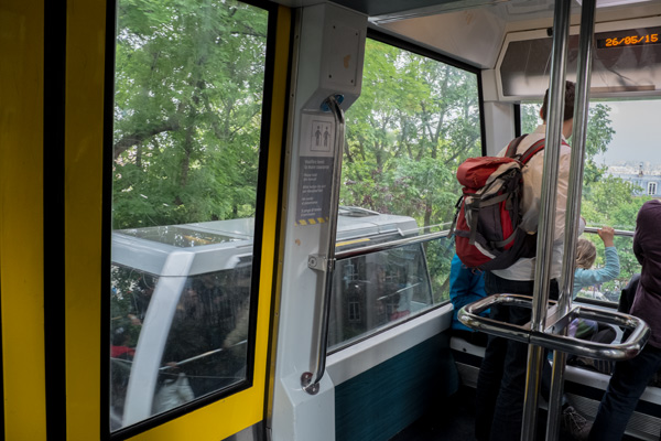 Nun aber flott wieder in die Metro und zurückgefahren. Nun stiegen wir direkt am Sacré Cæur aus. Diese Kirche wurde Ende des 19. Jahrhunderts errichtet. Wir schauten uns erst einmal von unten alles an. Danach entschieden wir, dass ich mit der Standseilbahn (Funiculaire) hochfahre und Friedrich und Jenni wollten die 237 Treppenstufen laufen.