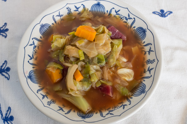 Nachtrag: Die Suppe gab es dann zum Mittag- und auch zum Abendessen.