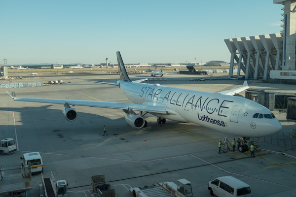 Michael brachte uns mit seinem neuen Auto zum Flughafen nach Hannover. Gegen 15 Uhr hob unsere Maschine nach Frankfurt ab. Wir hatten nun genügend Zeit, um zum Flugsteig Z zu kommen. Dass wir in der Hochsaison reisen, merkten wir schon, alles war proppenvoll und überall standen Menschen Schlange. Egal, wir haben Urlaub und lassen uns nicht die Urlaubsstimmung verderben.