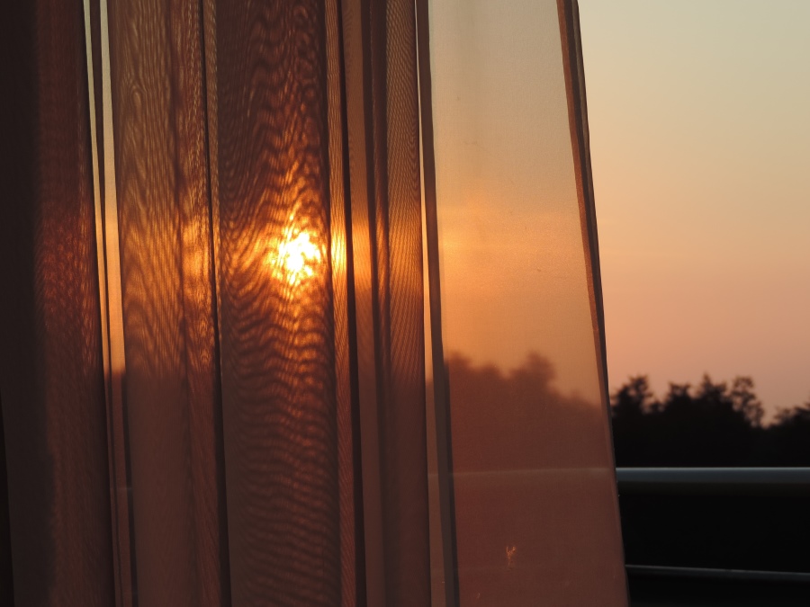 Allerdings Kiki, nein - ich hab keine Gardinen gekauft.Das ist in meinem Kurheim Zimmer der Sonnenaufgang durch den Store.