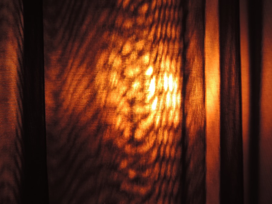 Erst hatte ich an Holz oder ein ähnliches Material gedacht. Da scheint aber nichts durch, vielleicht doch richtung gardine, wie kiki vermutet, oder Vorhang????????