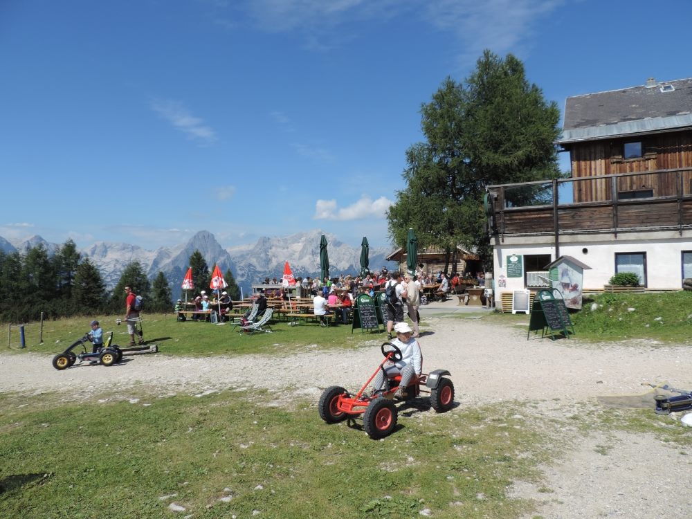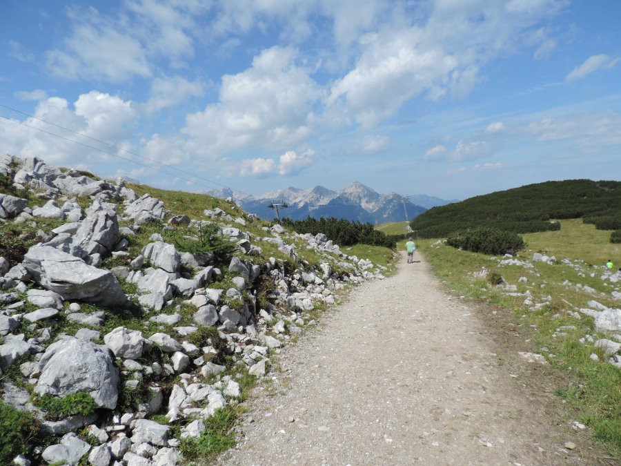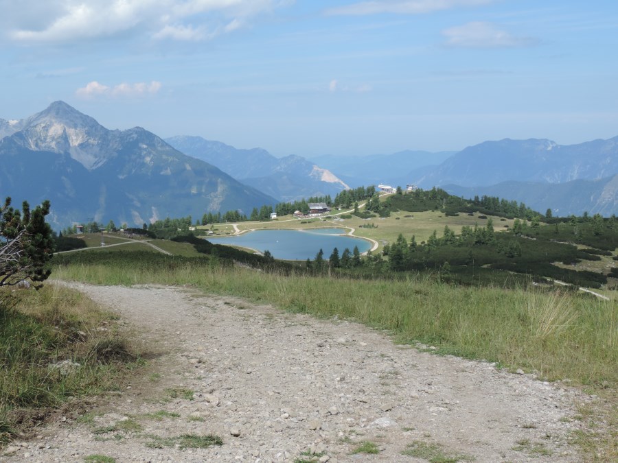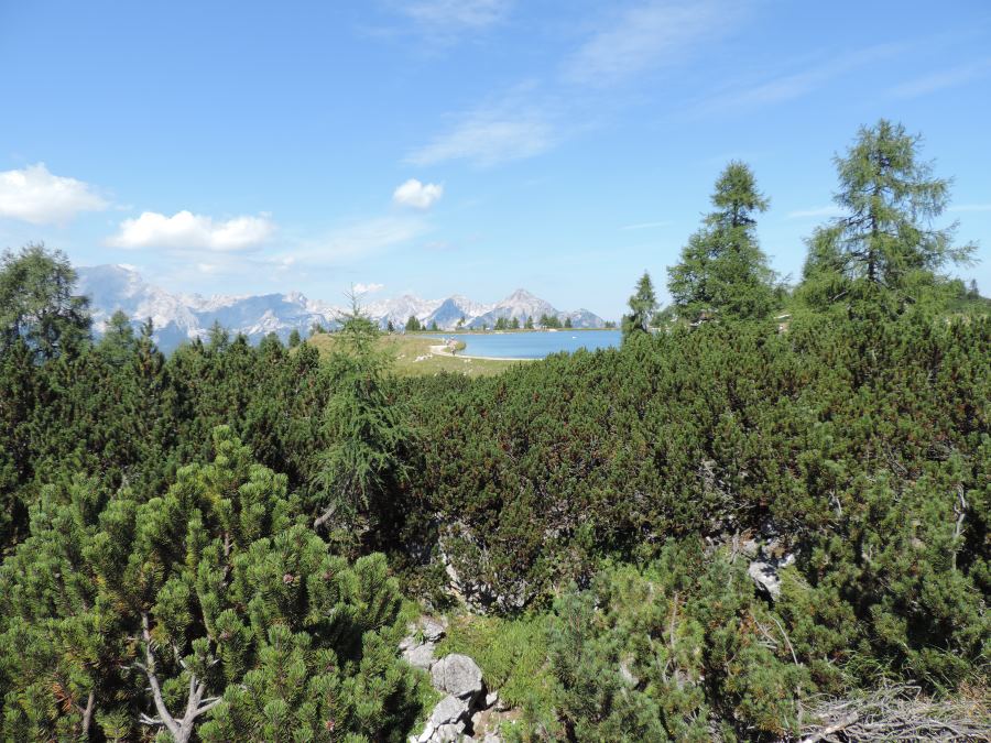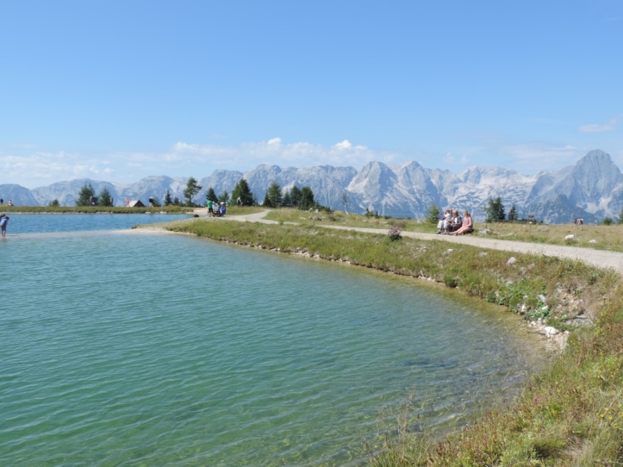 Nun waren wir an der Mittelstation bei den Almen angelangt und suchten auf den vielen Wegweisern und Tafeln nach unserem See.