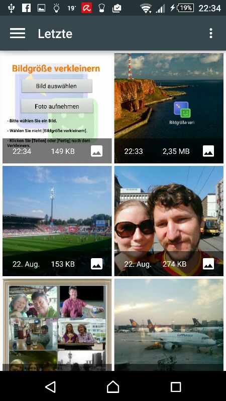 Ich habe mir schon vor einiger Zeit die APP für Android "Reduce Photo Size" (Bildgröße verkleinern) heruntergeladen. Damit kann man schnell die Fotos verkleinern und auch ein wenig beschneiden, wenn man will.