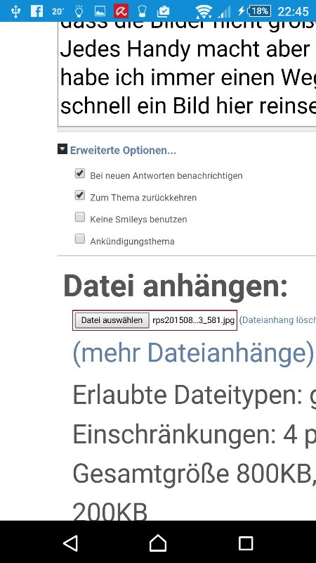 Jedes Handy macht aber schon Bilder in MB-Größe. Daher habe ich immer einen Weg gesucht, wie man dennoch mal schnell ein Bild hier reinsetzten kann.