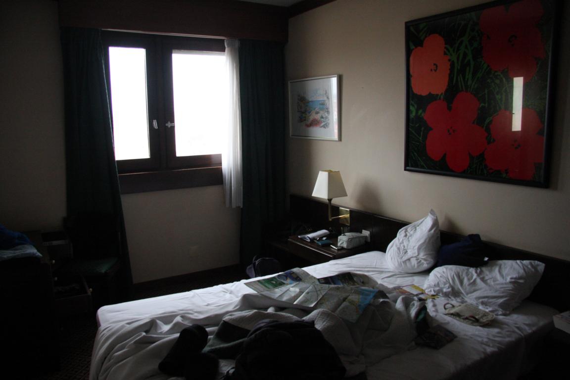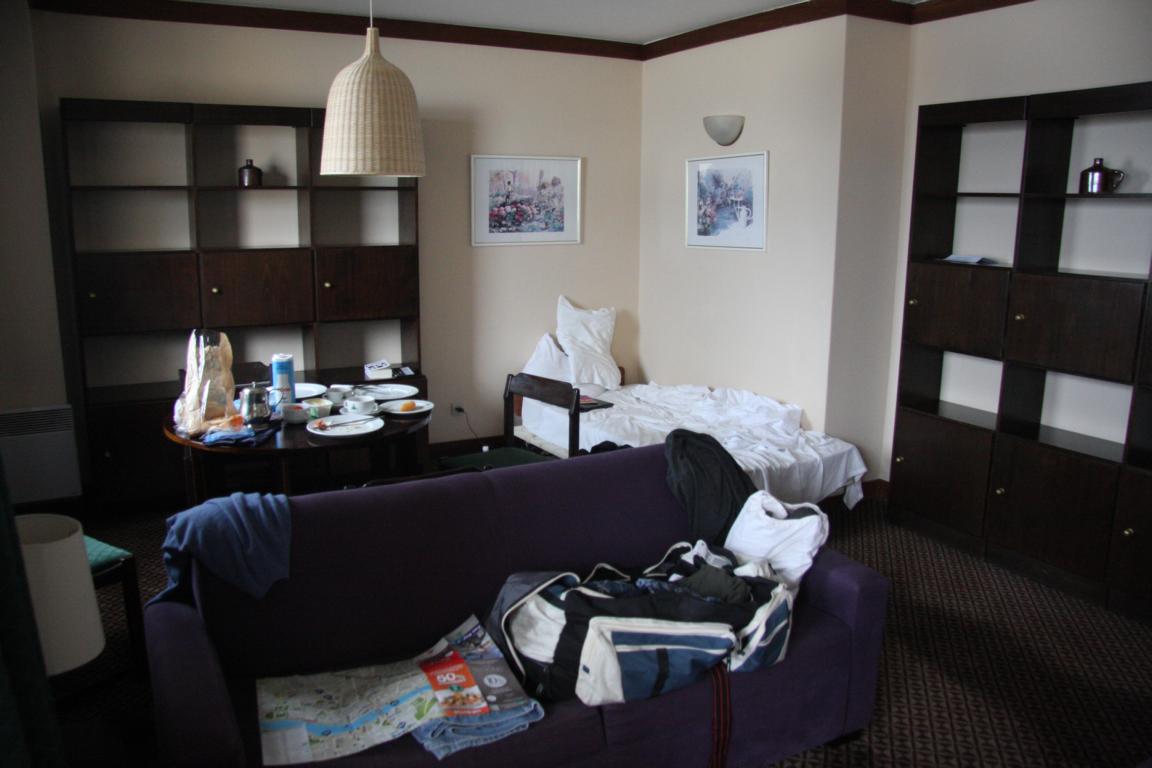 Das Appartment ist riesig - ein Wohnraum, in dem ein Bett steht, was groß genug für Okke ist. Ein Schlafzimmer, leider nur mit einem französischen Bett mit einer Matraze, auf dem wir zu zweit nicht so gut schlafen können.