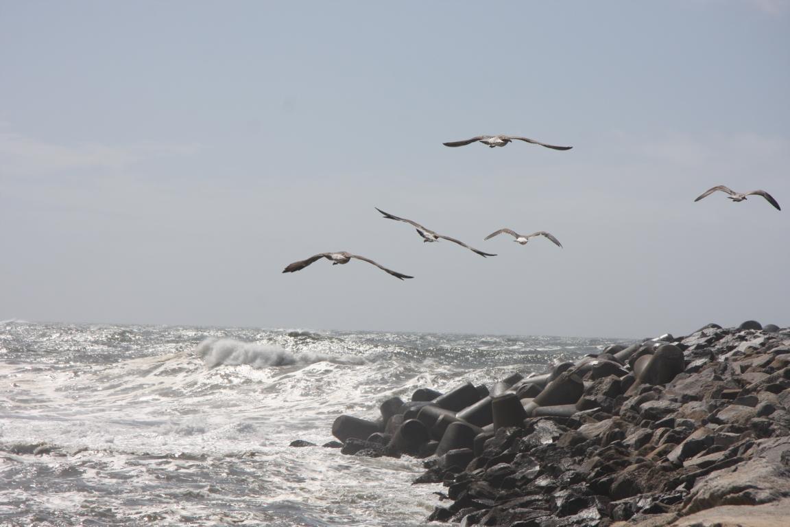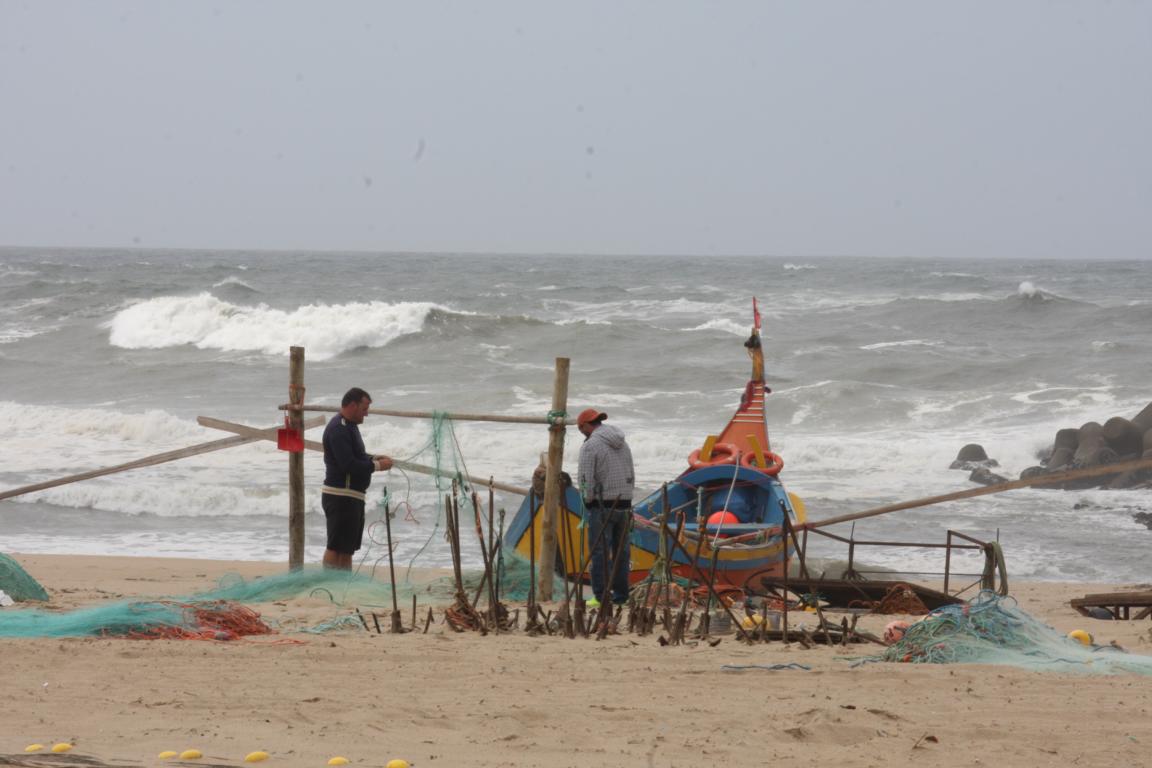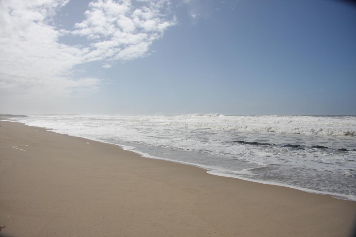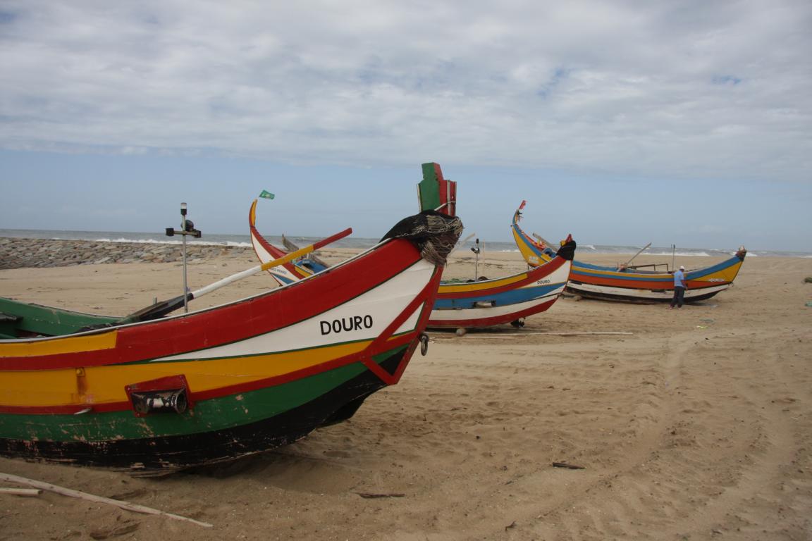 Der Vormittag entscheidet sich dann doch zunächst für ein paar Regenschauer. Es ist sehr windig, die Wellen peitschen an den Strand. Am späten Vormittag klart es dann auf und wir entscheiden uns, zunächst an den Strand zu gehen. In einiger Entfernung haben wir Fischerboote liegen sehen.