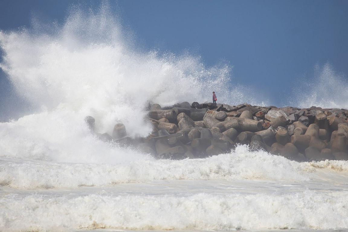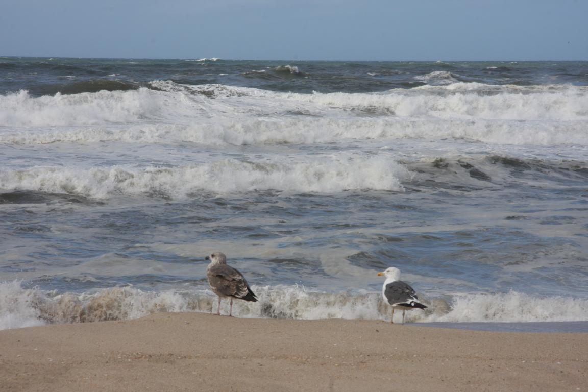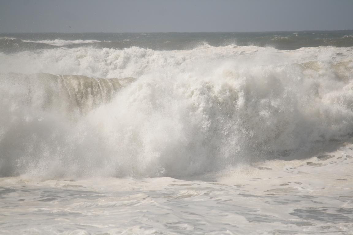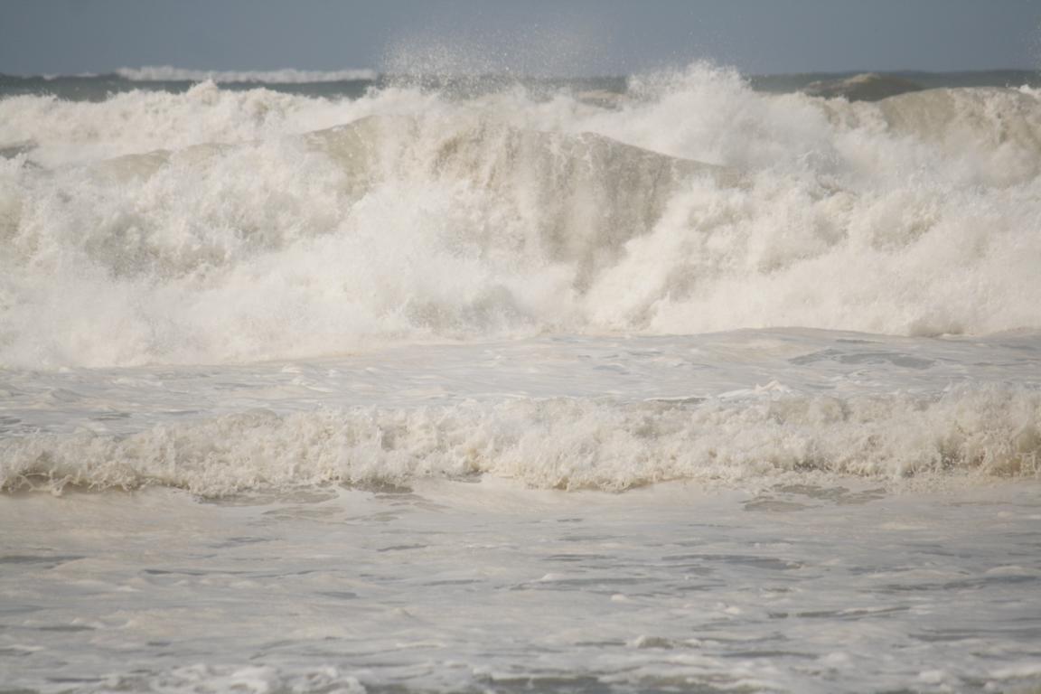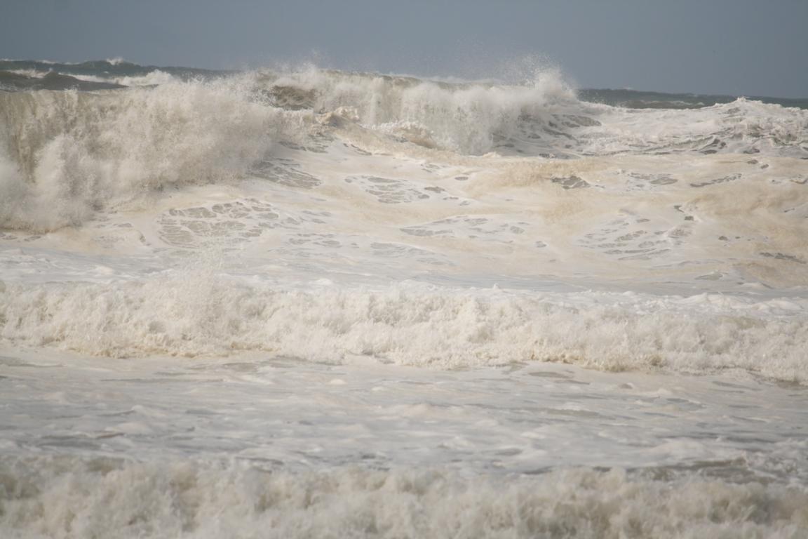Beim Frühstück setzt Starkregen ein und ein riesiger Sturm. Die Wellen sind noch gewaltiger.