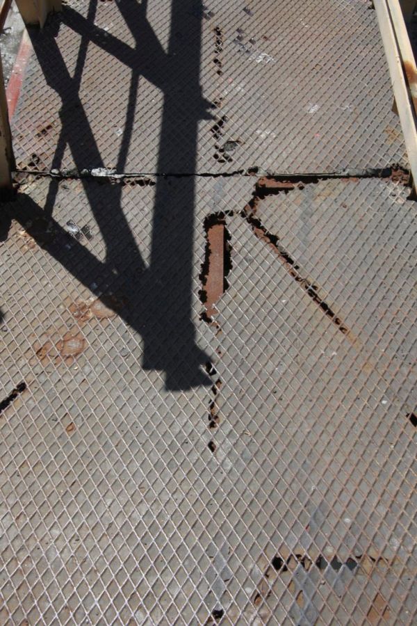 Von einer rostigen Verladebrücke kann man gut fotografrieren, allerdings ist mir der Gang darauf alles andere als angenehm, da sie doch sehr verrottet aussieht