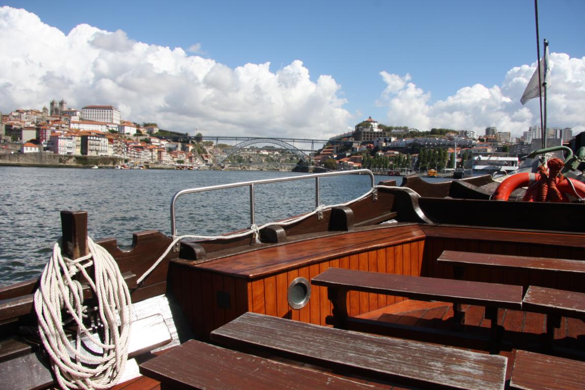 Auf dem Schiff jede Menge Ausflugsschiffe, die ein 6 Brückenfahrt auf dem Douro unternehmen, die eine Stunde dauert und die wir auch vorhaben.