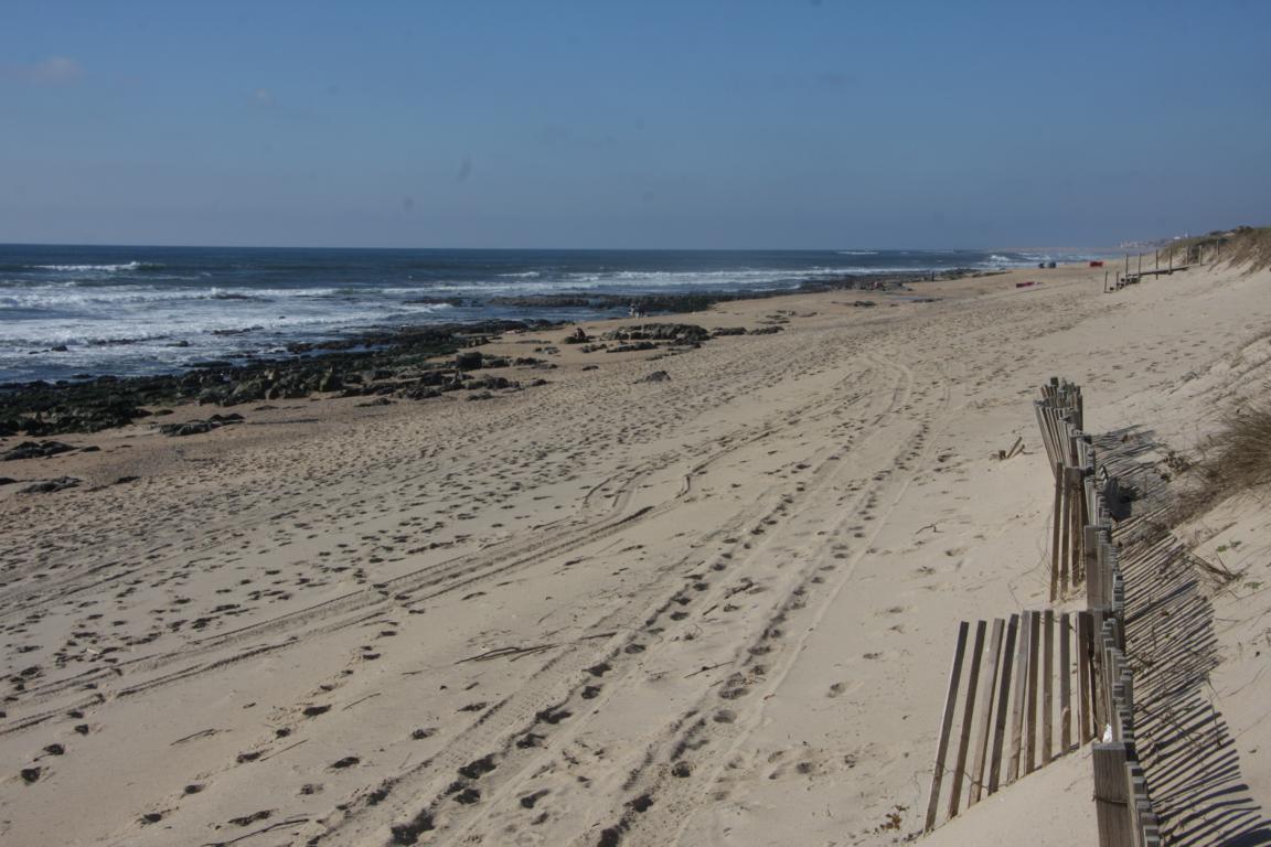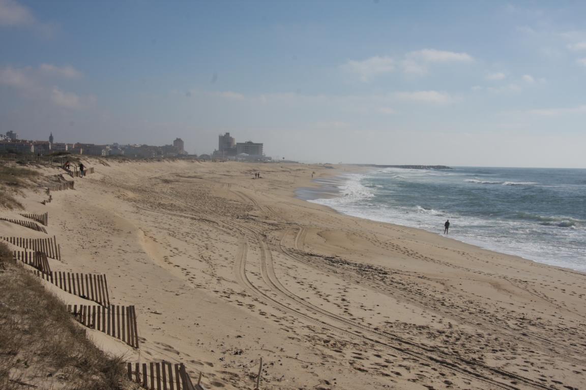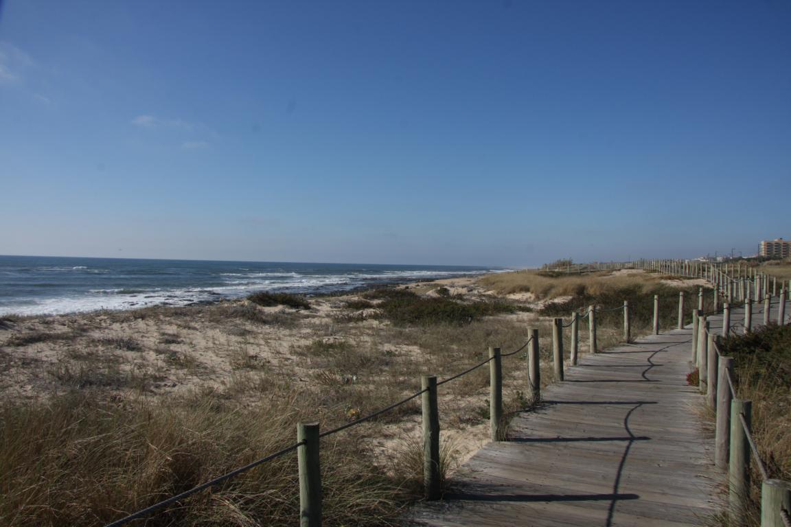Am Rande von Espinho gibt es eine herrliche Strandfläche - Es gibt tatsächlich einen Holzsteg auf einer Länge vopn 15 km, auf dem man immer am Strand entlang laufen kann