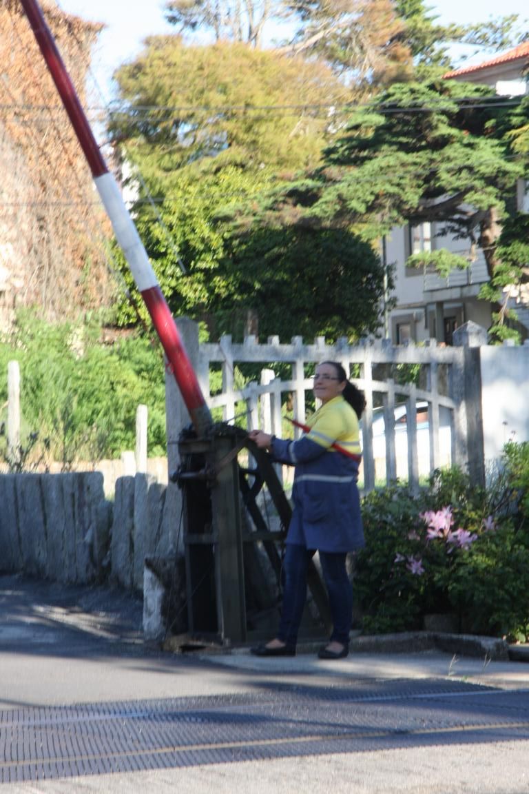 Ein Stück vor dem Bahnhof haben wir noch etwas Besonderes entdeckt - eine Bahnschranke, die per Hand betätigt wird