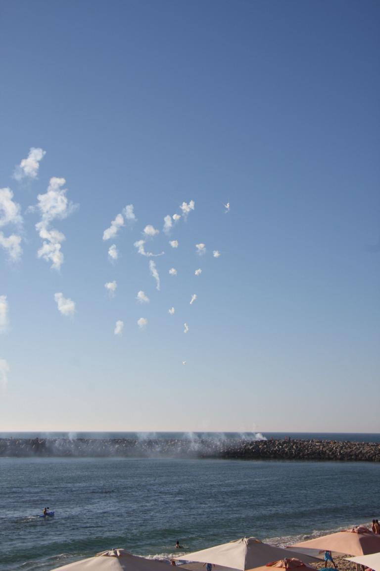 Parallel zum Strand stockt das Ganze - wir laufen dorthin und harren der Dinge. Dann wir auf der Mole wieder geschossen - keine Ahnung, was das soll - vielleicht die bösen Geister vertreiben?
