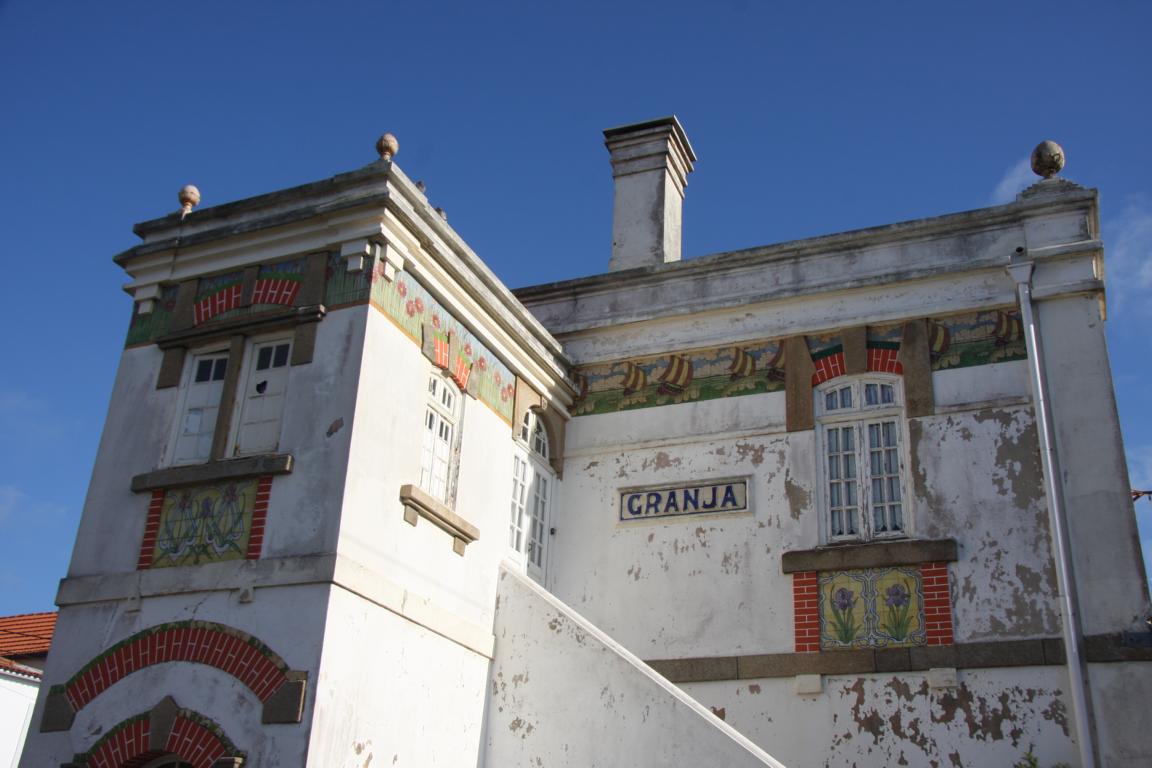Wir trennen uns vom Strand und fahren weiter nach Granja - dort gibt es einen besonders schönen Bahnhof... zwar ist sein Zustand nicht der Beste, aber wir finden ihn trotzdem toll