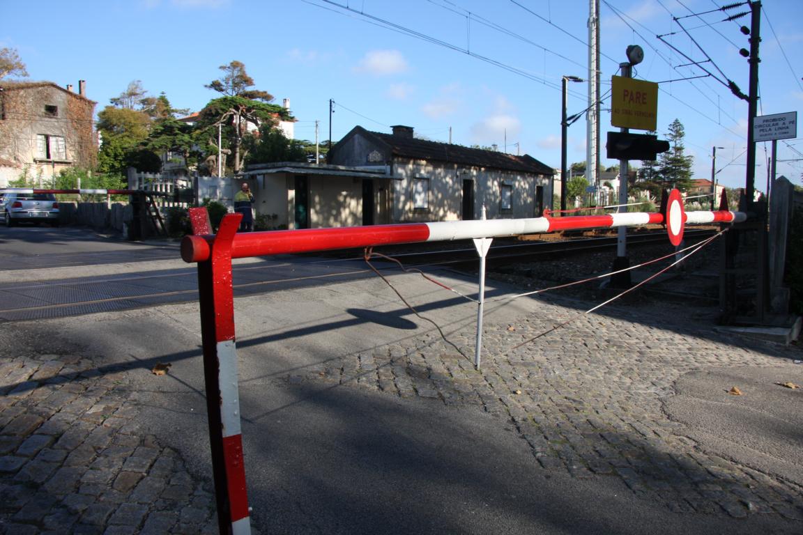 Ein Stück vor dem Bahnhof haben wir noch etwas Besonderes entdeckt - eine Bahnschranke, die per Hand betätigt wird