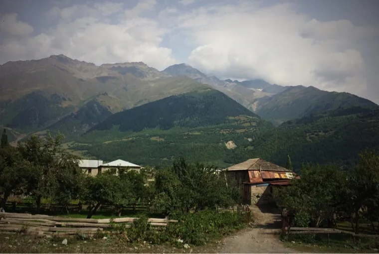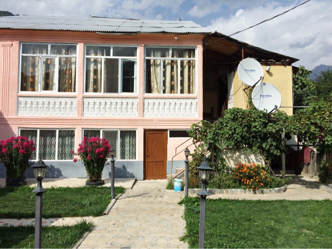 Das kleine Dorf hier ist echt niedlich. Hab mich in einer kleinen Pension einquartiert. Sehr nette Besitzer, werde mich abends in den schönen Garten setzen. Morgen geht es in ein kleines Dorf weiter in die Berge hinein. Die Gipfel des Kaukasus sehen schon sehr imposant aus, leider ist es zur Zeit meist bewölkt.