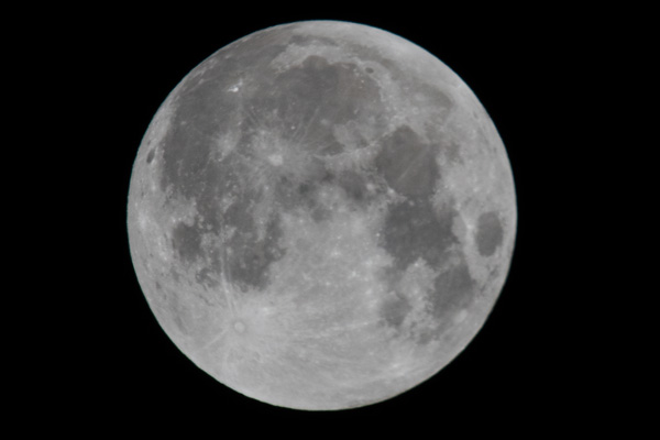 Es waren beides Ausschnitte. Wenn ich den Mond etwas verkleinere, dann wird er schärfer, aber man sieht auch die Sterne, die nicht als Punkt, sondern länglich erscheinen. Der Mond wandert 1.023 Metern pro Sekunde um die Erde.