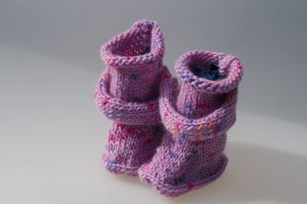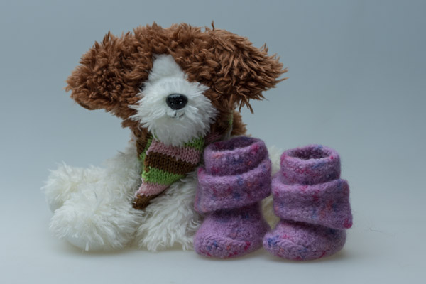 Die Wolle ist von Wash + Filz-it! fine babycolors - auf dem Etikett war die Beschreibung, die Wolle soll für 3 Paar Schühchen reichen in Größe S - M und L