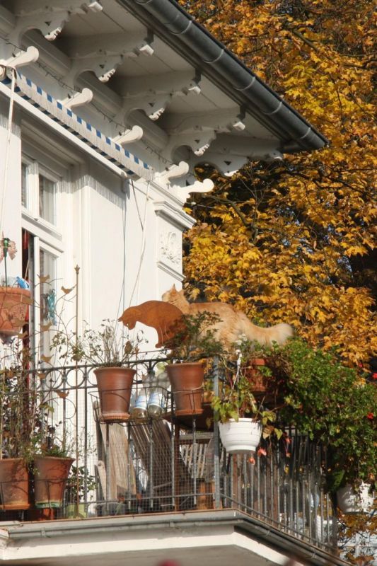 Auf dem Balkon einer schönen alten Villa stand ein Katzenschild... und dahinter das Original. Das fand ich echt witzig.