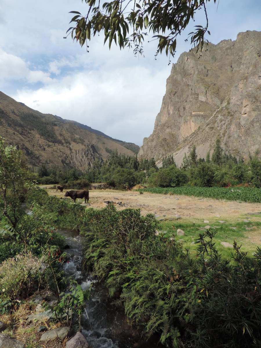 Die Weiterfahrt bringt uns nach Ollantaytambo, am Ende des Hl. Tales auf 2800 m Höhe. Hier gibt es eine Felsenfestung der Inkas. Wir besteigen diesmal die Terrassen nicht und geniessen es auf einer Bank zu sitzen und den Anderen beim Schwitzen zu zu schauen. Der Fluss rauscht neben uns, Kühe grasen, es ist so richtig angenehm.