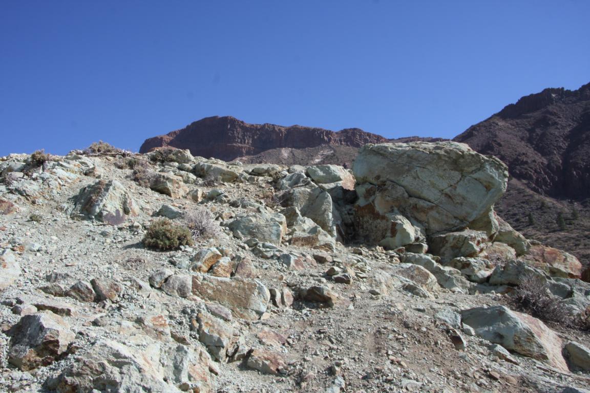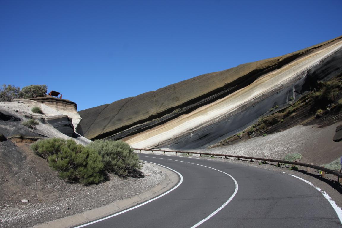Am rechten Rand der Straße zeigen sich immer wieder interessante Farben der Gesteine
