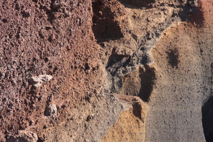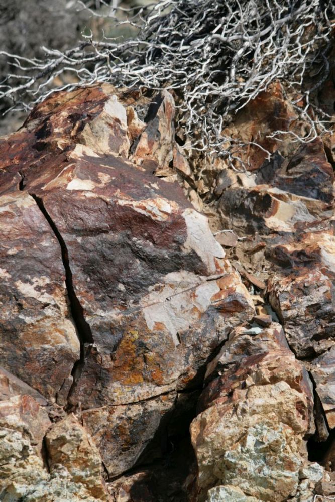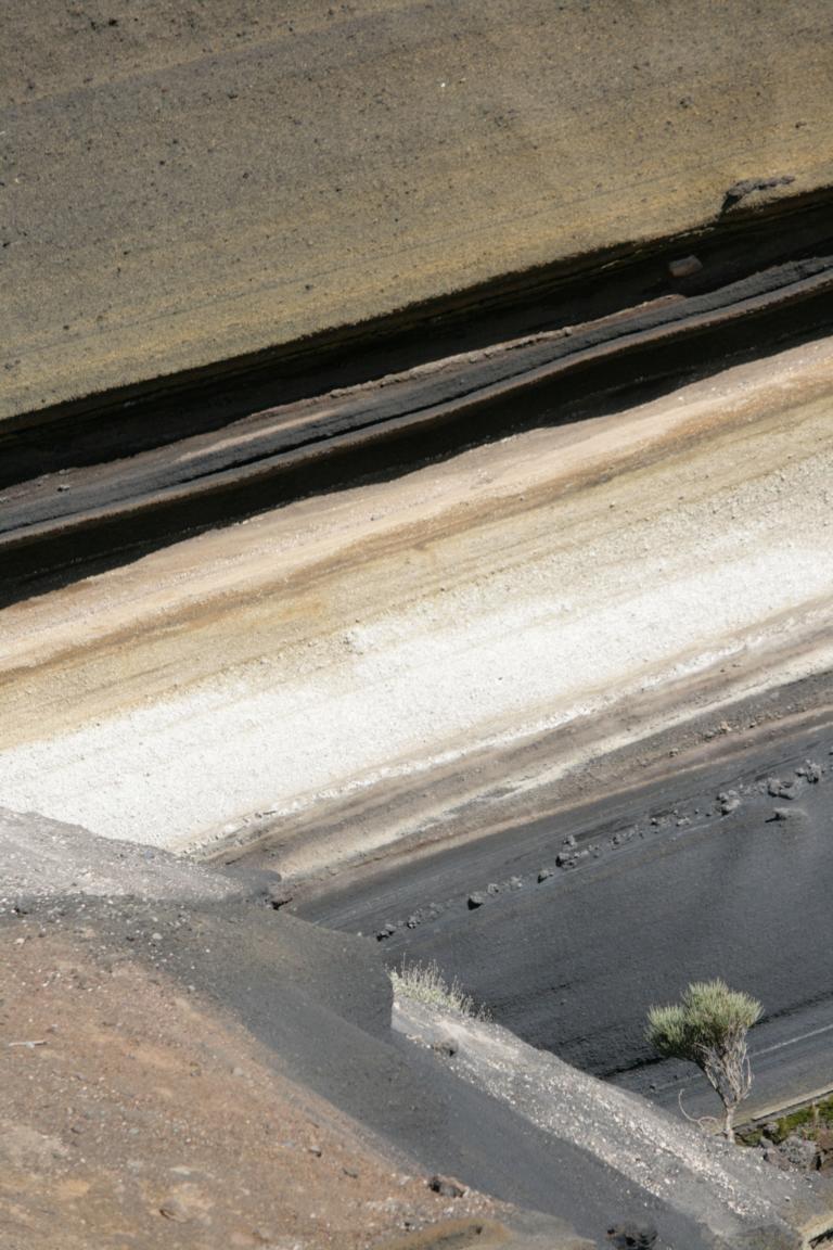 Am rechten Rand der Straße zeigen sich immer wieder interessante Farben der Gesteine