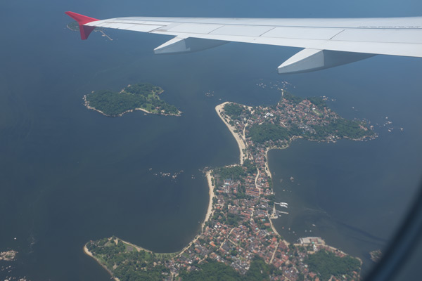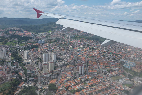Gestern sind wir mit dem Taxi zum Flughafen gefahren. Mit dem ganzen Gepäck war es am bequemsten. Mit der TAM flogen wir zunächst nach Sao Paulo, ein Flug von nur einer Stunde. Die Kontrollen sind lasch, wie dürfen Wasser mitnehmen, das Gepäck wird aber gescannt. Es gibt überall extra Zugänge für Familien mit Klein-Kindern und Menschen mit Behinderungen. Da ich immer noch nicht richtig laufen kann (siehe hier: Unfall auf der Osterinsel), erspare ich uns so viele längere Wege und wir haben auch kaum Wartezeiten. Das betrifft auch die Passkontrollen und das Einsteigen an Board. Manchmal hat man doch ein paar Vorteile. <$§$
