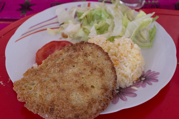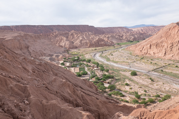Also tigerten wir los, erst einmal einen Kilometer aus dem Ort heraus, dann war nix mit malerischem Weg am Fluss entlang. Dieser war ausgetrocknet und es war eine staubige Straße. Friedrich zeigte auf die "Burg" hoch oben in der Ferne, ich schüttelte mit dem Kopf: niemals.