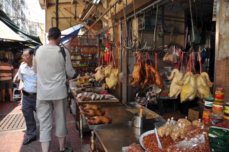 Tagsüber waren wir mal in den grossen Kaufhäusern von MBK bis Central World unterwegs, mal sind wir mit der öffentlichen Fähre nach China Town gefahren und sind dort durch die Strassen und engen, vollgepackten Märkte spaziert.