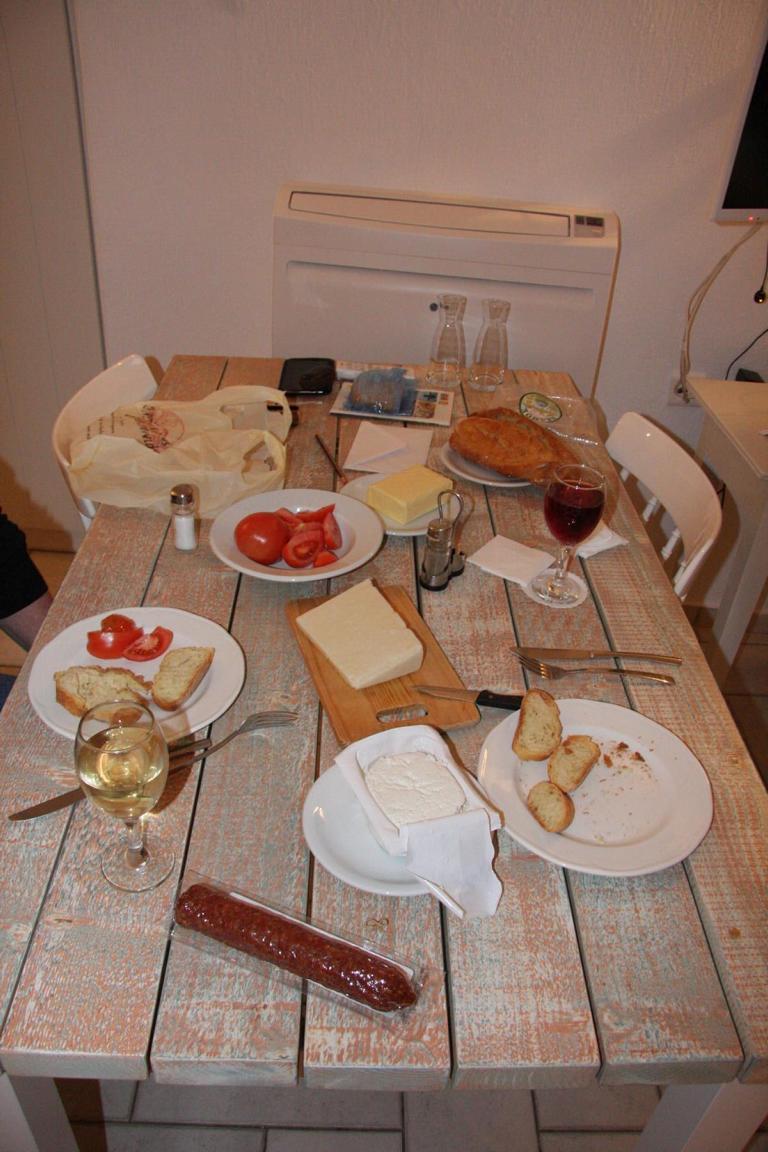 Zum Abendsessen kaufen wir uns Brot, Wurst, Käse und Butter, sowie Wein ... hier vor Ort sind die Preise erschreckend hoch! Vor allem der Wein ist unglaublich teuer. Die meisten 0,7 Flaschen liegen zwischen 12,50 aufwärts.