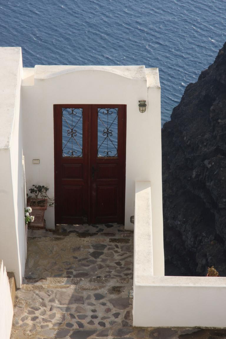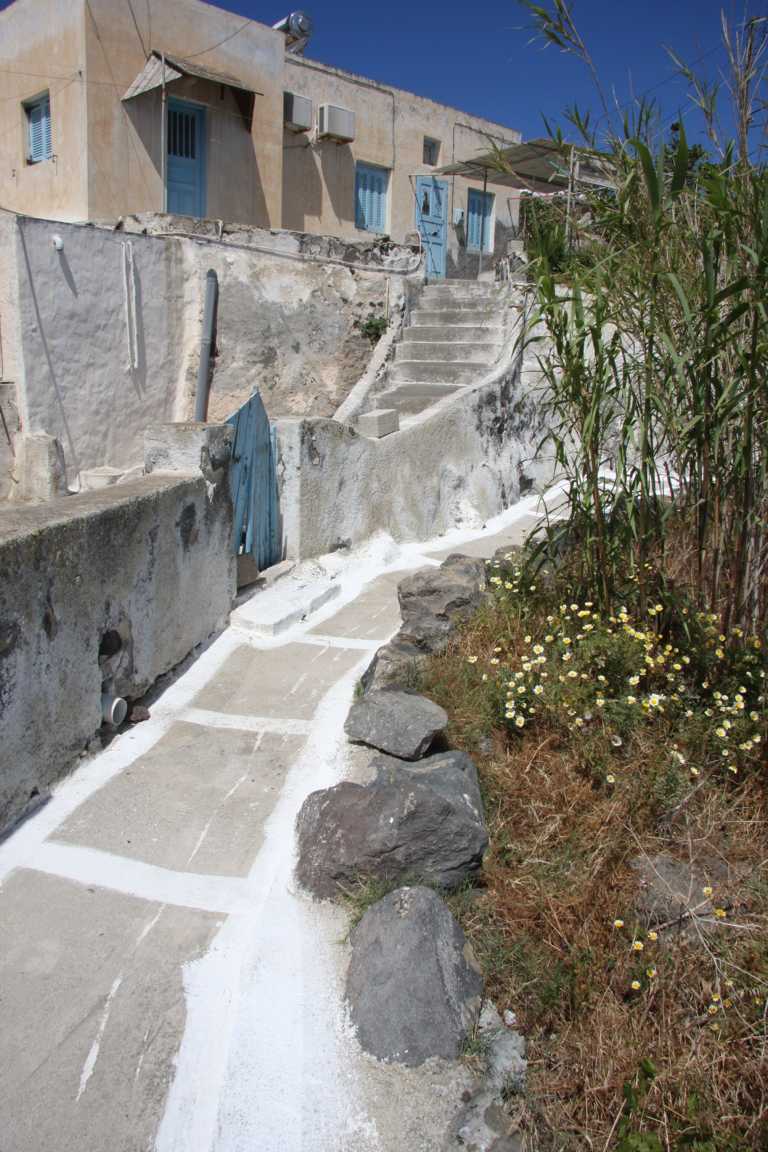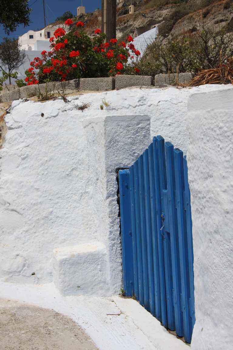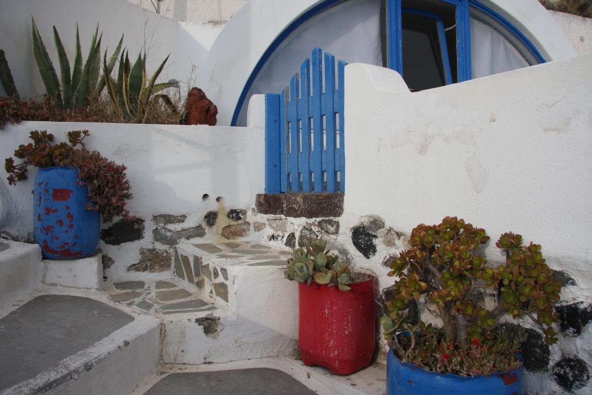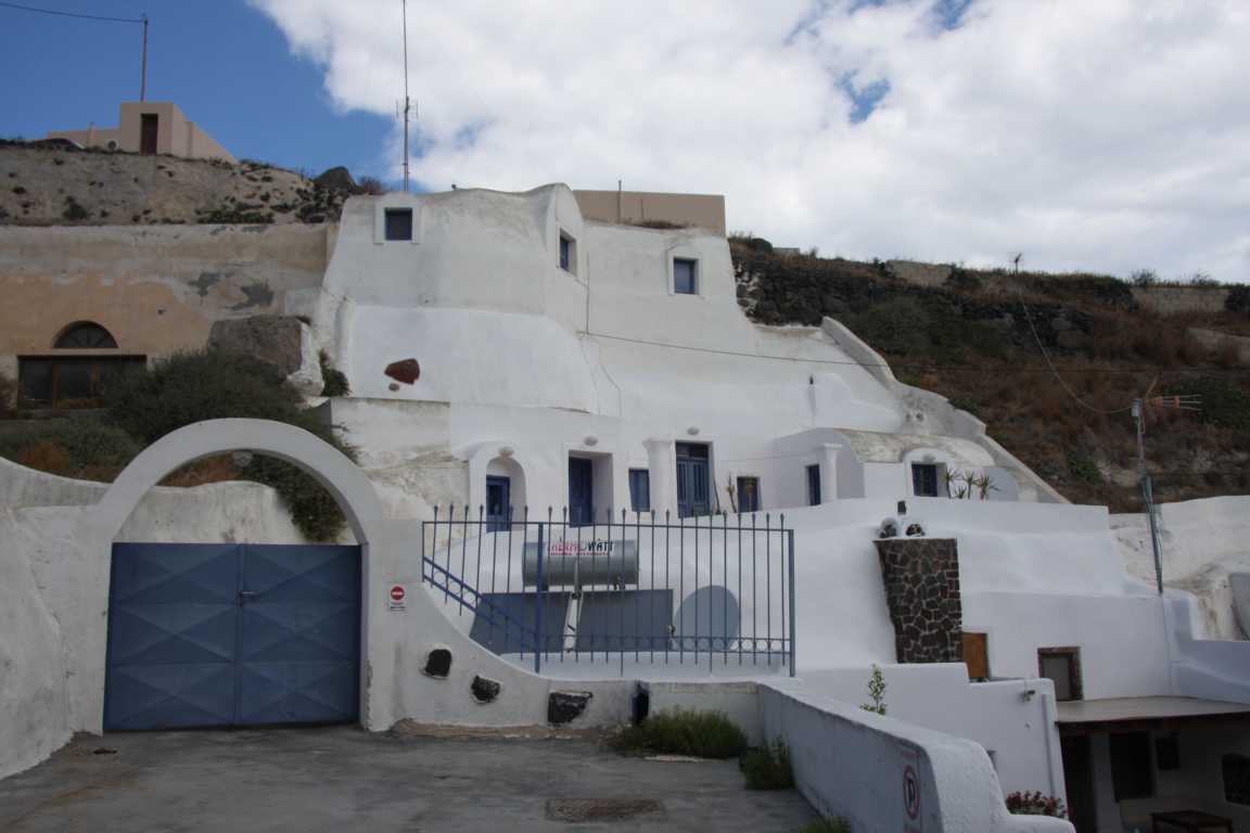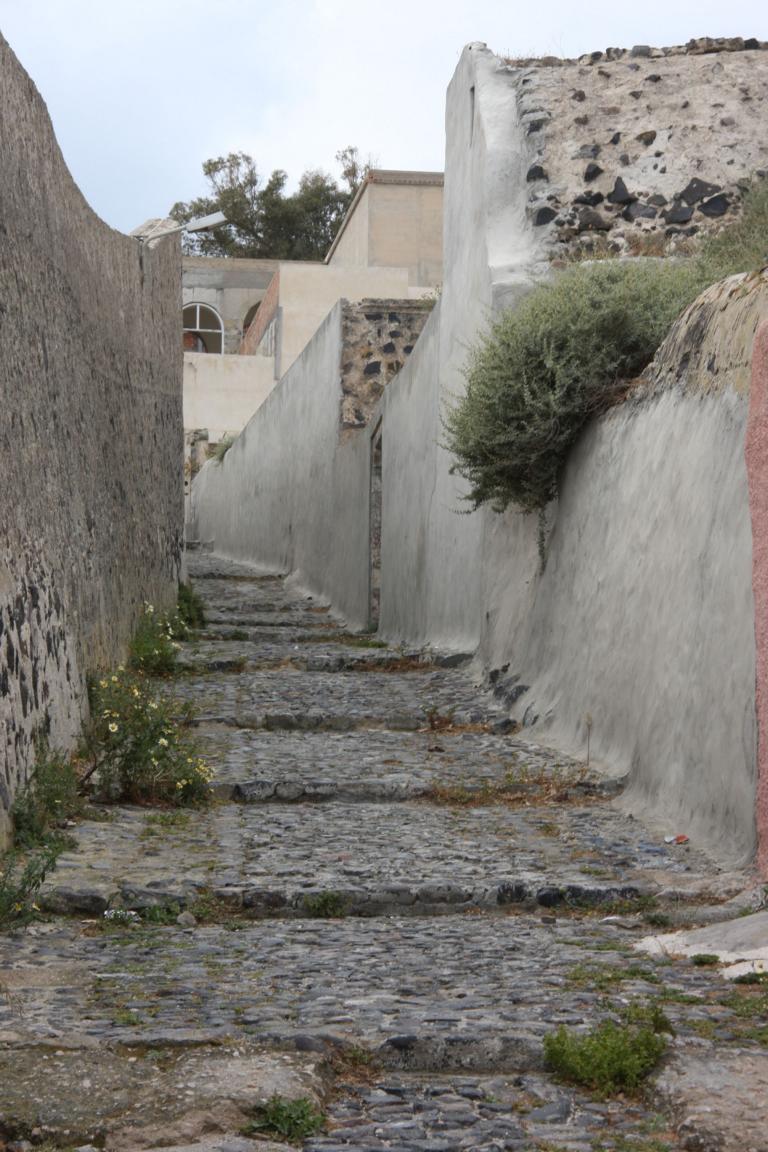 Jan entdeckt diesen Ort in unserem Reiseführer unter den Top-Ten und stellt fest, dass er ganz in der Nähe von Imerovigli liegt, wo wir wohnen. Wir können zu Fuß laufen. Also machen wir uns auf den Weg, der leider direkt an der Straße liegt. Das ist unangenehm, da für Fußgänger kaum Platz ist und die Autos hier an einem vorbeirasen.