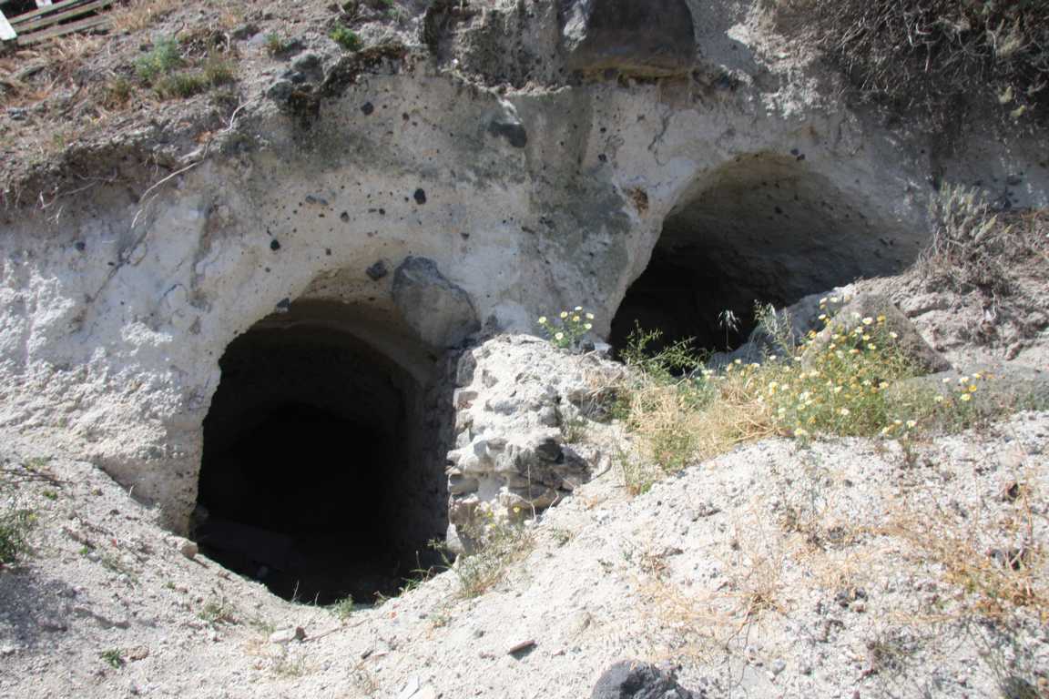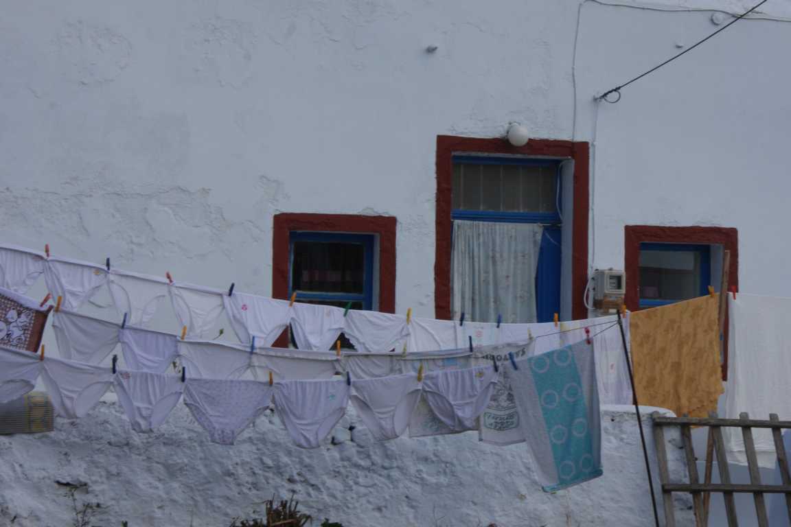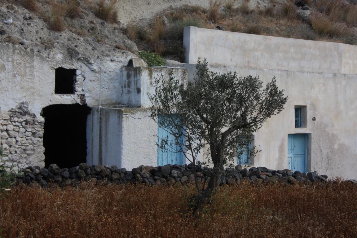 Im Reiseführer steht:Mitten in einer Erosionsrinne gelegen hängt Voùvoulos an einem steilen Abhang. Und ganz typisch seien die hier und dort erkennbaren Höhlenhäuser, die auch heute noch ihrer traditionellen Verwendung als Wohnhaus,Stall oder Lager finden würden. -